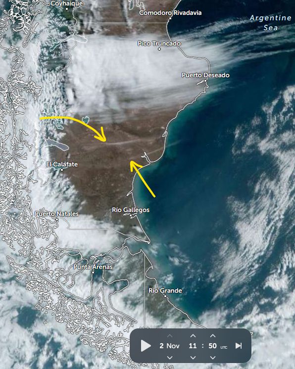 And this morning #highlatitudedust activity continued in Patagonia, so mostly likely there was dust emission all night.