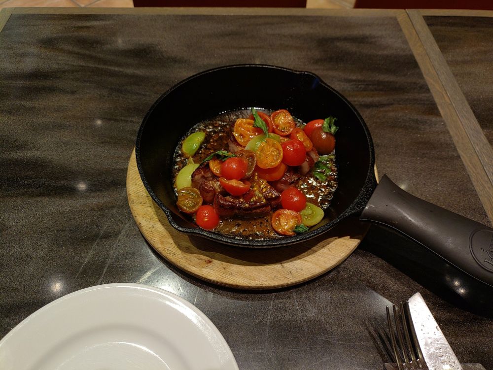 ピッツァがいいのは当然だけど、メインで注文したこちらの黒豚も最高。ワインがすすむ。
