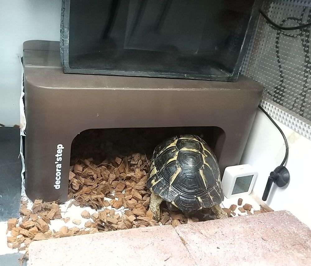 2枚目…餌の合図に反応してシェルターから出てきたヤモリ