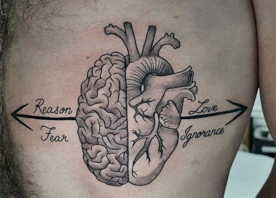 Aww thank you!! This one is on my ribs and one of my tattoo designs! It’s love reason over fear, love over ignorance. The balance of the head and the heart. It’s one of my favorite tattoos!