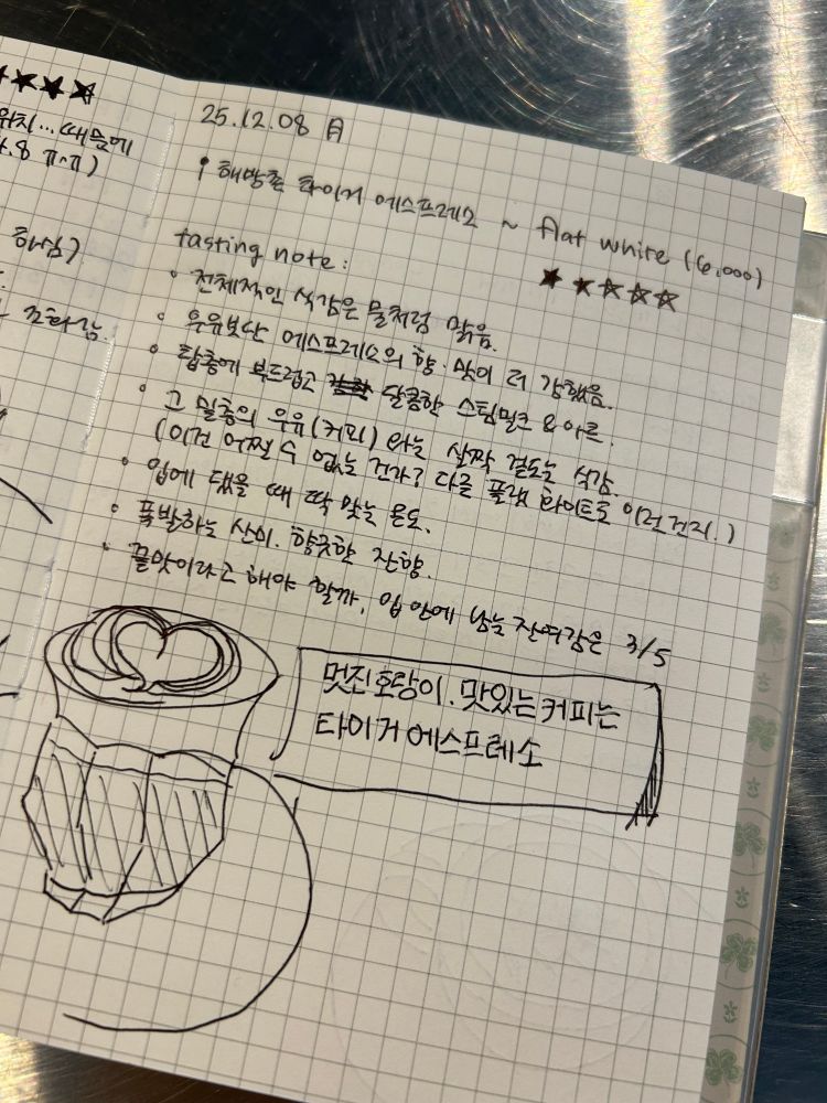 우유의 풍미가 느껴지는 플랫 화이트 도전. 탑층 크레마는 진짜 진짜 진짜 맛있었는데... 아랫층 커피와 섞이지 않고 이질적인 맛이 나서 아쉬웠다. 근데 탑층 우유는 정말 맛있었음...