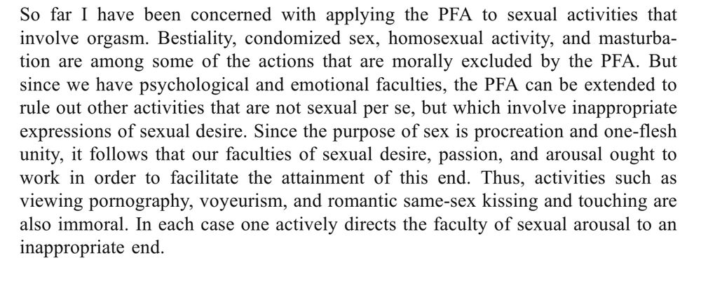 Men så går det riktig galt innimellom. I “If Homosexuality is Wrong, So is Contraception”, argumenterer han for, ja nettopp, akkurat det. Og selv om han sier at han bare sier at det er det samme er det tydelig at han mener at både prevensjon og homseri er umoralsk.