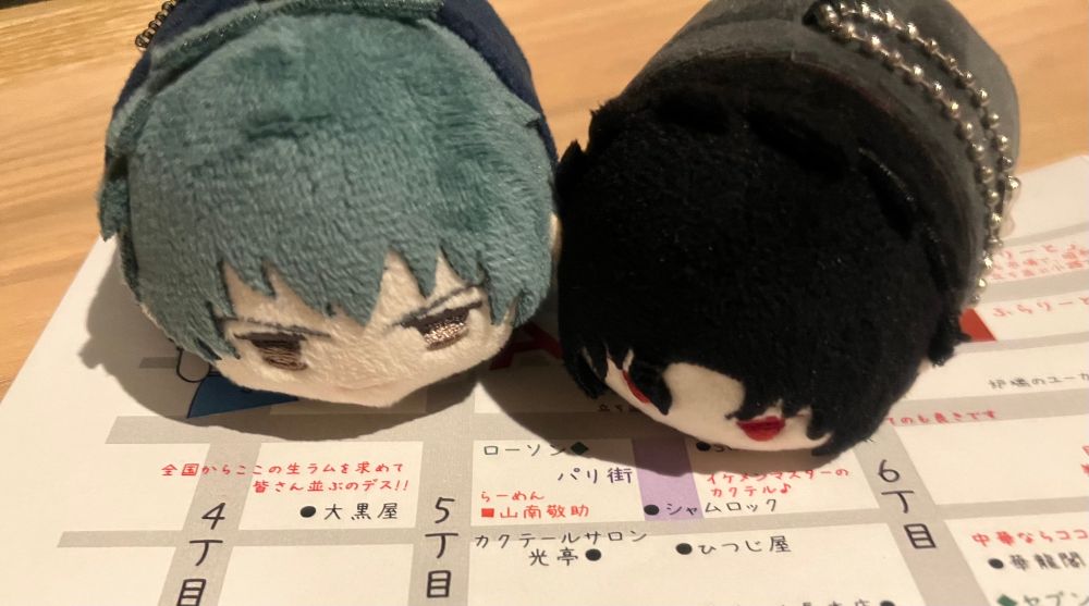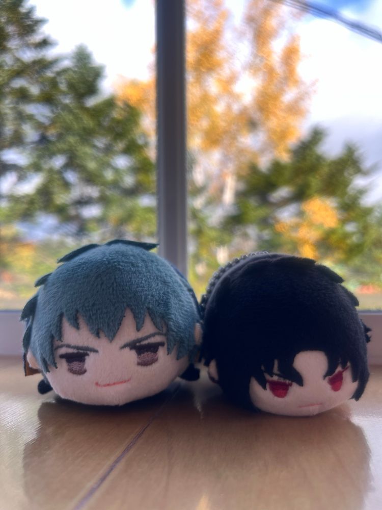 ふわふわ☁️カップルシートのぬいスポットあったのでちびぐる斎土に寝てもらった☺️