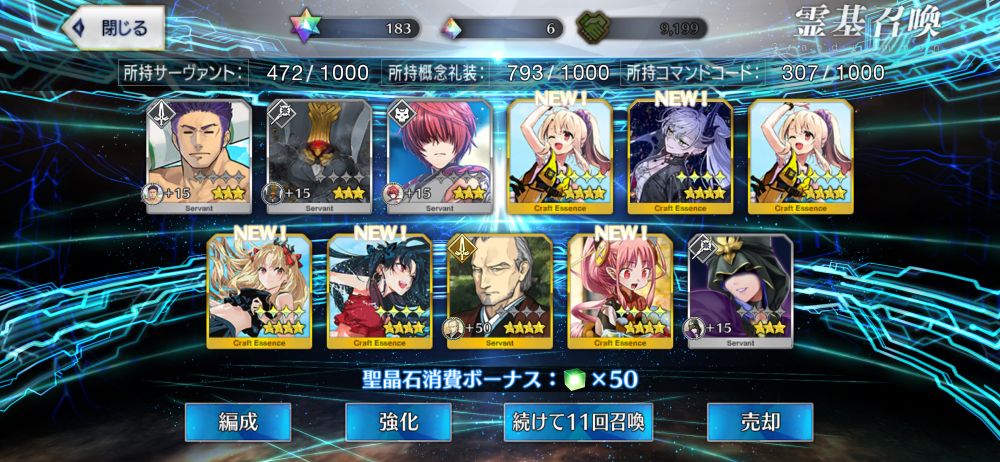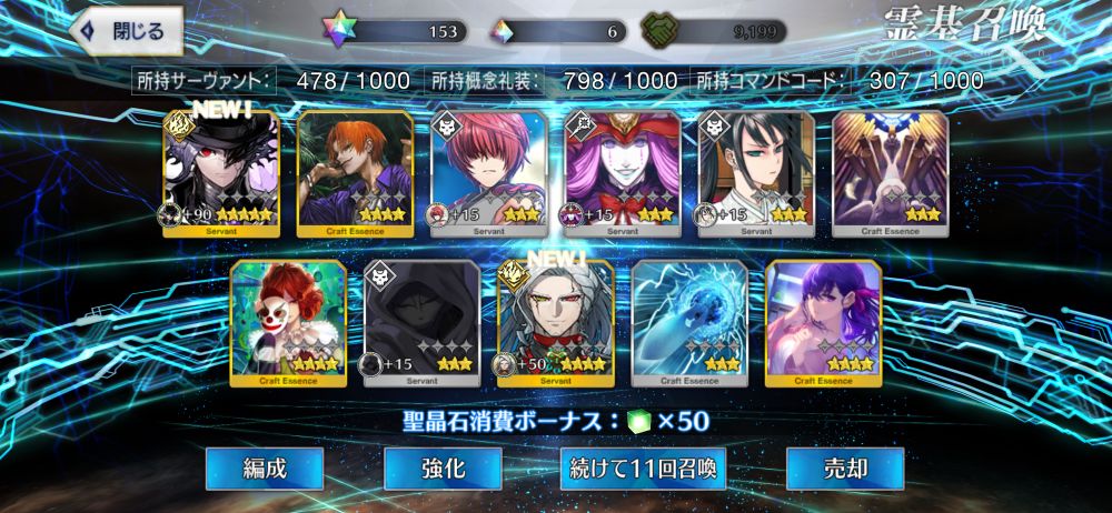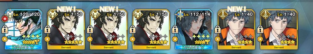 8人目の土方さん来たしモリアーティきたし というか福袋などの確定召喚じゃないガチャで星5鯖ニ枚抜き初めてですしかも10連という最速さ…