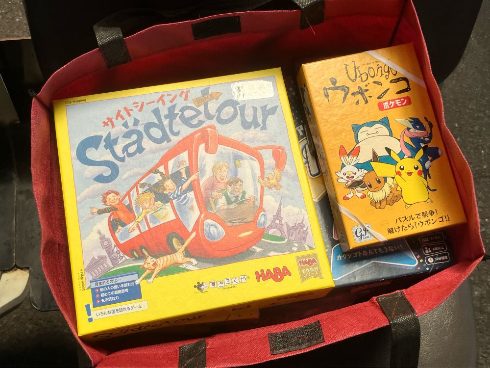 ボードゲームを見せながら電車に乗ります。