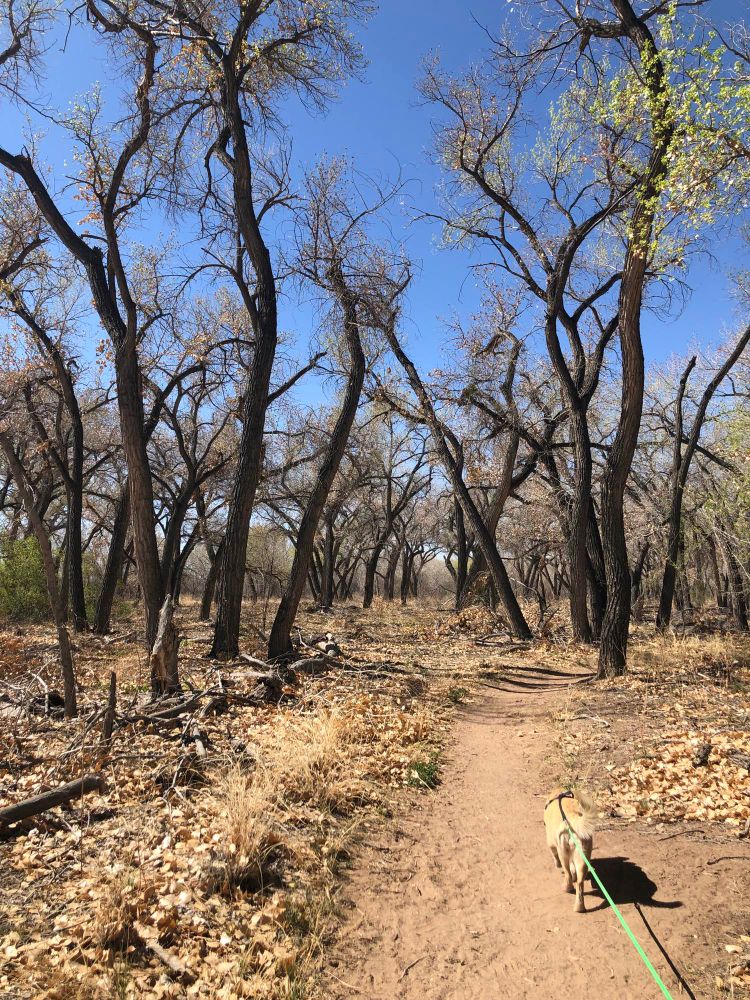 There are leaves coming out slowly so it looks like early spring even though it's hot enough to be almost summer.