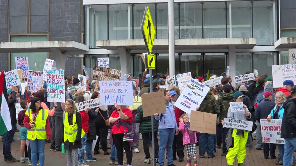"100 people" says BDN, but guess what... This is way more. A quick and dirty panning shot of the rally in Bangor.