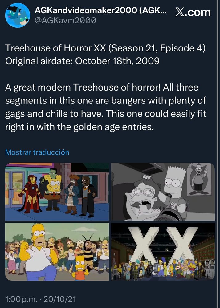 Here’s a thread of screenshots of my tweets sharing my opinions on The Simpsons’ Treehouse of Horror episodes.