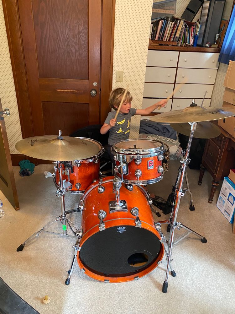 Visiting the grandparents and learning new ways to make noise.