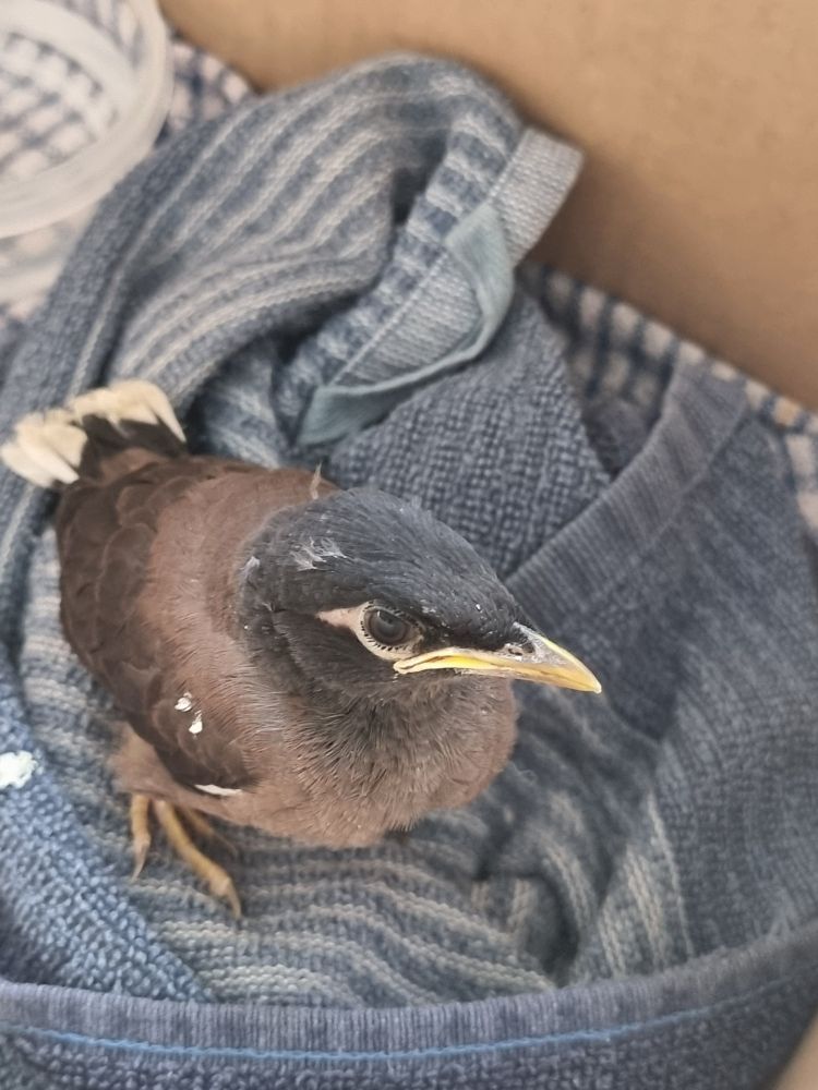 I made him comfortable in a box with some towels and some water. I wanted him to have a safe space to be away from cats and other nightly predators.