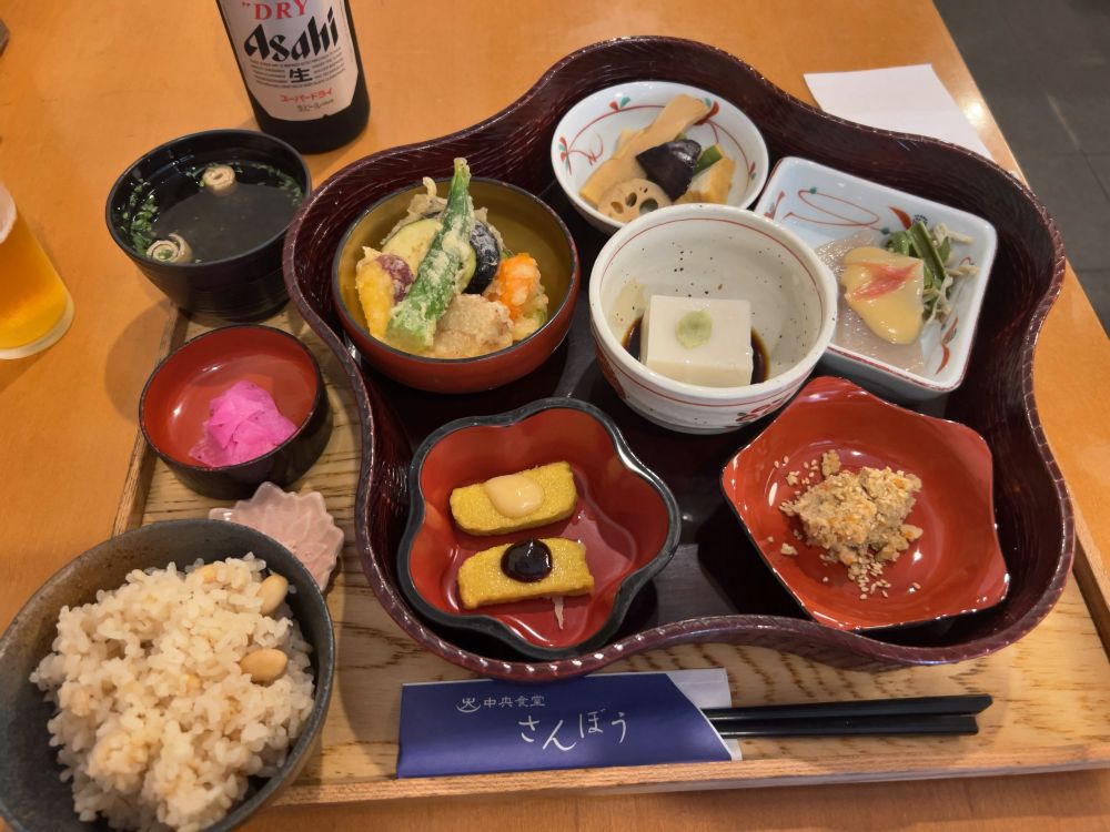 高野山でランチに飛び込んでみた。中央食堂さんぼう。精進花籠弁当をオーダー。この町は割と手間暇かかる精進料理が手軽に食べられていい。しかもどのお店でも美味しい。動物系のものは出汁に至るまで使われておらず、昆布、干し椎茸、かんぴょうなどから出汁をとるらしい。ごまとうふやがんもどき、おからなどどれも美味しい。#中央食堂さんぼう #和歌山県伊都郡 #orientalvegan