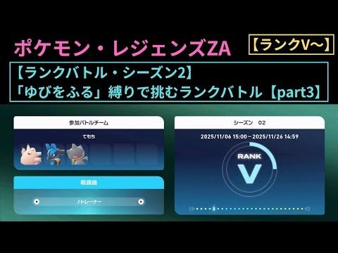 ポケモン・レジェンズZA【シーズン2・「ゆびをふる」縛りで挑むランクバトル】part1 youtube.com/watch?v=yzQq... @YouTubeより