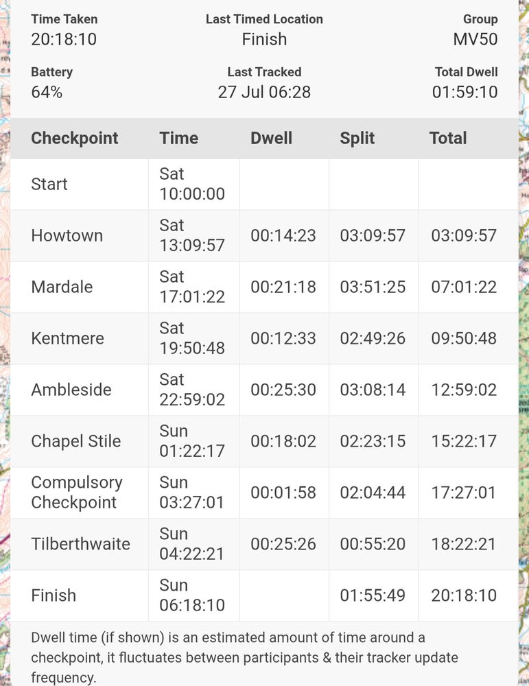 Lakeland 50, completed 20hrs 18 minutes.