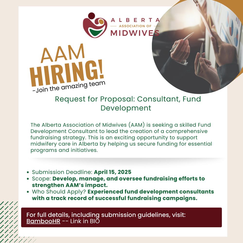The Alberta Association of Midwives (AAM) is seeking a skilled Fund Development Consultant to lead the creation of a comprehensive fundraising strategy. albertamidwives.bamboohr.com/careers/28?s...
