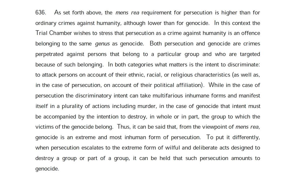 Sin embargo, esto es lo que decía TPIY sobre el crimen de lesa humanidad de persecución (Prosecutor v. Kupreski et al Trial Judgment.
