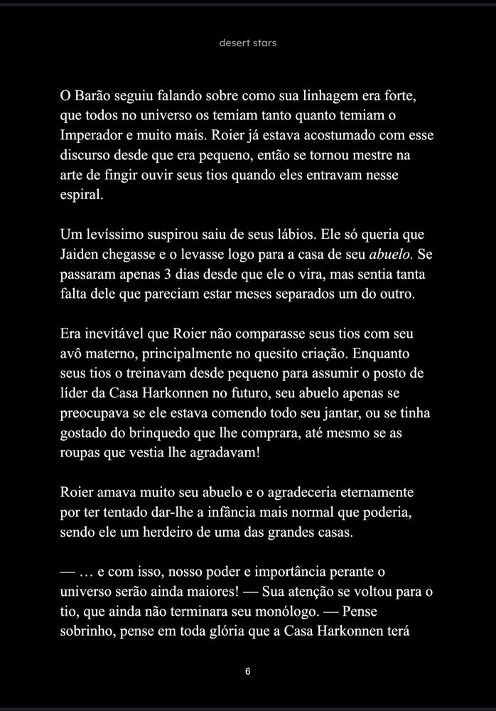 Como herdeiro da Casa Harkonnen, Roier deveria ser um espelho que refletia todas as crenças e costumes violentos de seu povo, mesmo que não concordasse com tais coisas