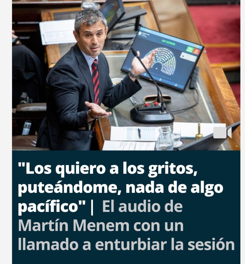 Se filtró un audio de Martín Menem en el grupo de WhatsApp de LLA diciendo que hoy tenían que estar a las puteadas y haciendo circo, acto seguido pueden ver a sus diputados gritando y a Menem haciendo acting de enojado.