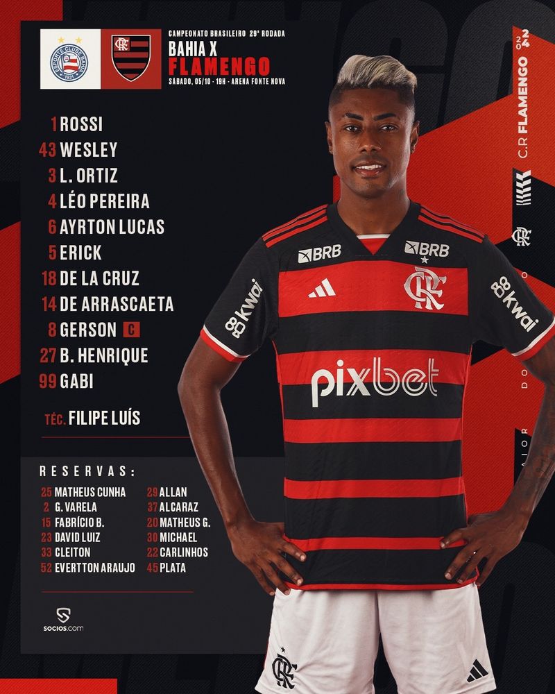 🚨 FLAMENGO ESCALADO! Filipe Luís escolhe Ayrton Lucas e Gabigol como titulares para partida contra o Bahia, pelo Brasileirão.