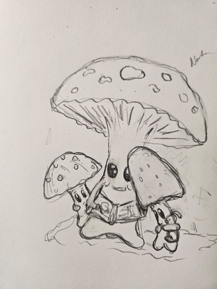 Asked my kiddo what to draw and he said a mommy mushroom reading to its kids. So here it is.