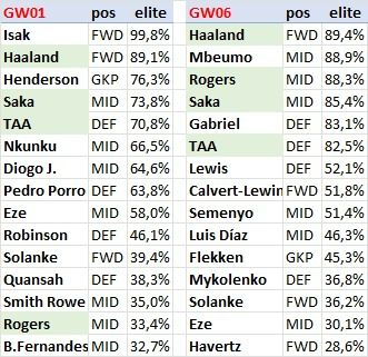 We compared GW1 vs GW6 elite squads — and how much has changed in just five weeks —>