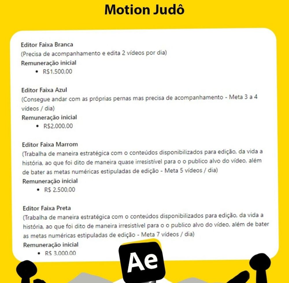 Os caras querem um editor sênior pra trabalhar fulltime (7 vídeos por dia) por 3k. Eu teria até vergonha de postar isso em nome da minha empresa. Credo