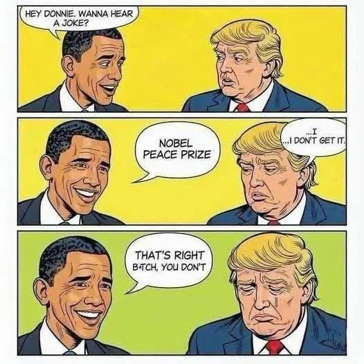 So many legit reasons this orange douchebag will NEVER win the Nobel Peace Prize. Not in 2025, not ever.