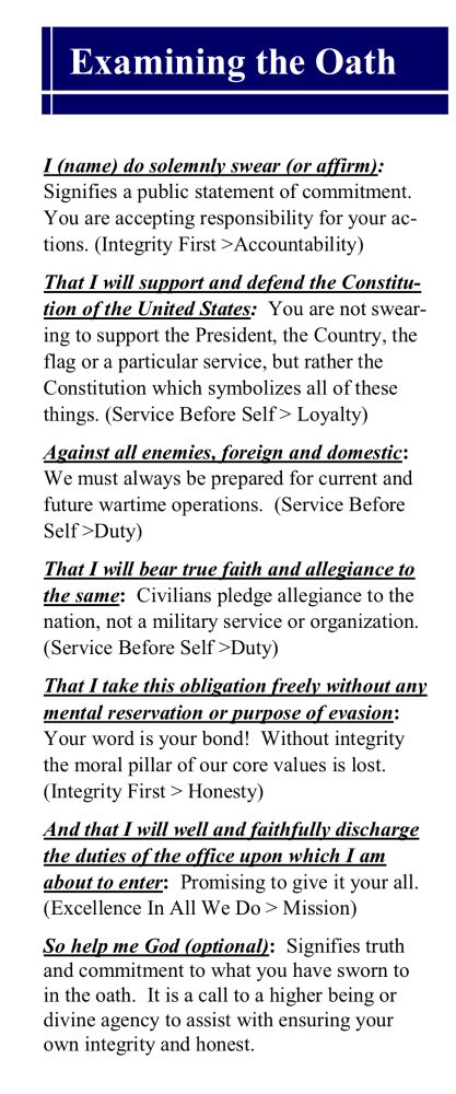 This is a breakdown of the oath of office by the Air Force. It *specifically* says “YOU ARE NOT SWEARING TO SUPPORT THE PRESIDENT…”