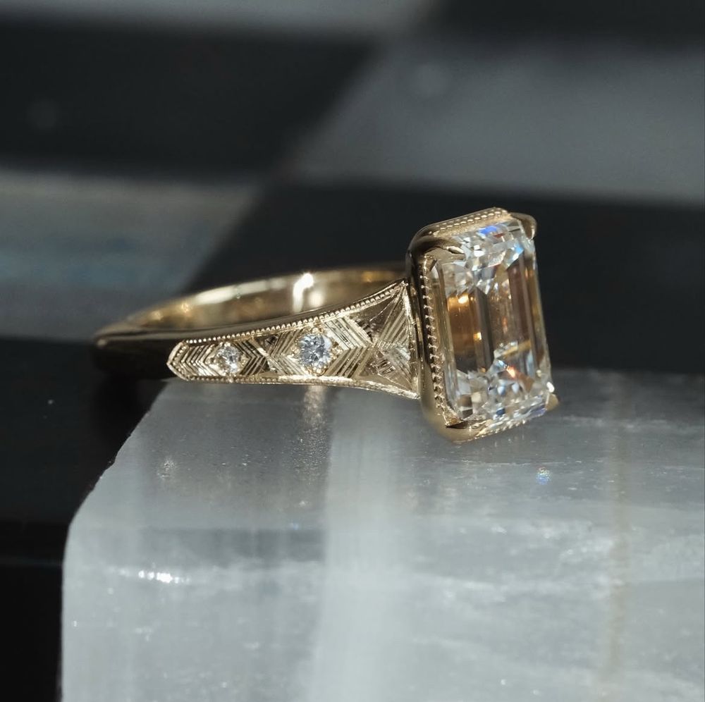 -obsessed with ethical gemstones; clients are not allowed to bring their own stones, and she designs around the specific stone
