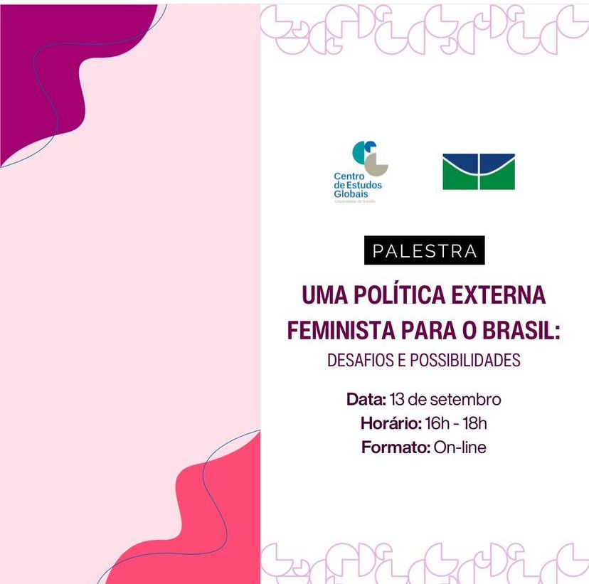 O Centro de Estudos Globais da UnB fará uma palestra com a Embaixadora Vanessa Dolce de Faria e a Ministra Viviane Rios Baldino com a temática “Política Externa Feminista para o Brasil: Desafios e Possibilidades” no dia 13/09, amanhã, às 16h, no formato online.