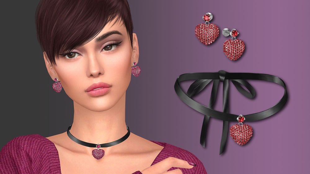 Treat your Sims to Valentine's Day with a beautiful set of earrings and necklaces with a pendant.