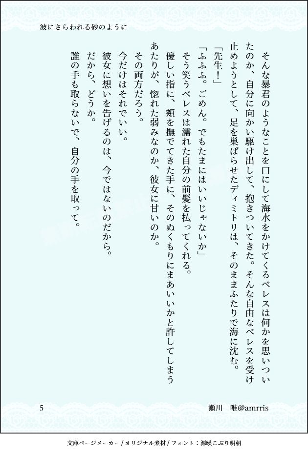 #ディミレス #Dimileth #文庫ページメーカー https://sscard.monokakitools.net/pagemakers/bunko/bunko_bgtx.php