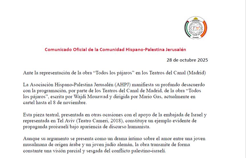Ante la representación de la obra “Todos los pájaros” en los Teatros del Canal (Madrid)