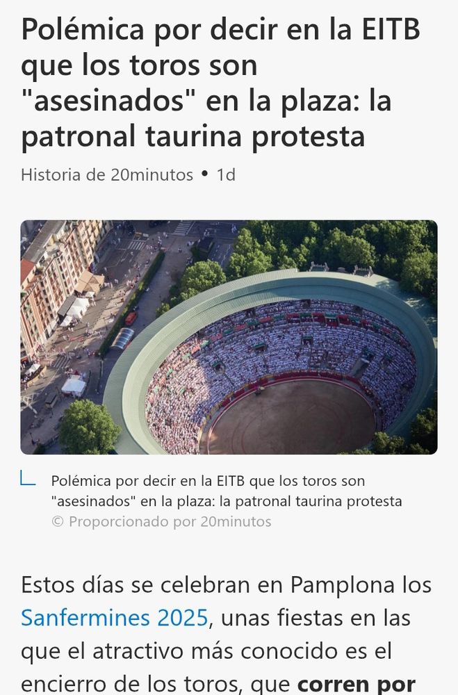 Aplausos a EiTB por informar con honestidad: los toros que corren por la mañana, por la tarde son lidiados y asesinados.