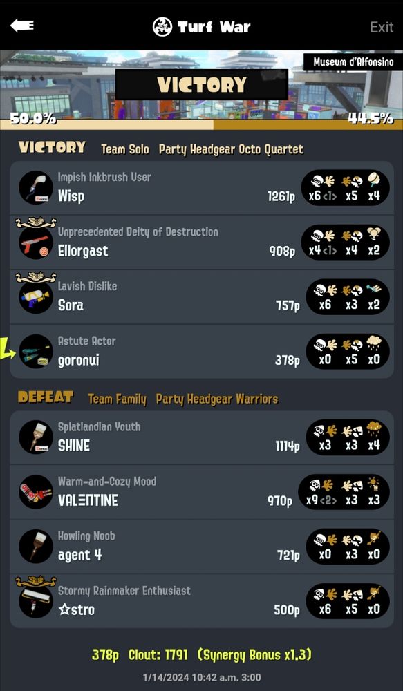 forgot to change my weapon for the only splatfest battle I played this weekend and thought we'd lose for sure because of it but I was literally. so carried