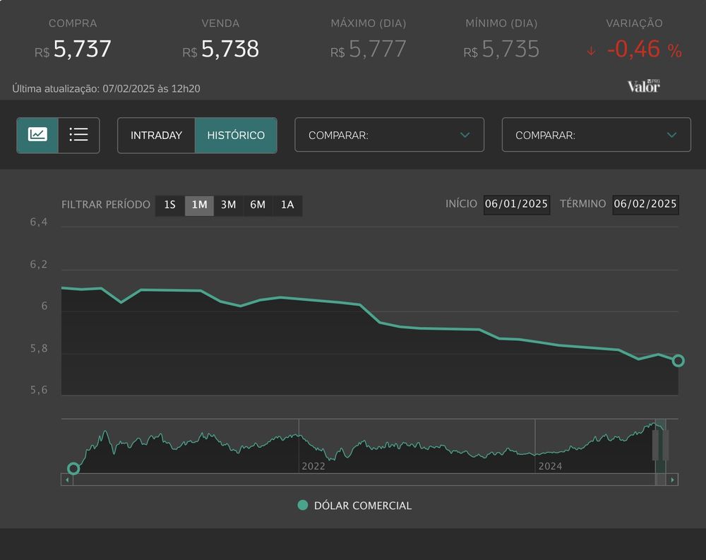 💵 Dólar segue trajetória de queda e vai a R$ 5,73, o menor patamar desde novembro.