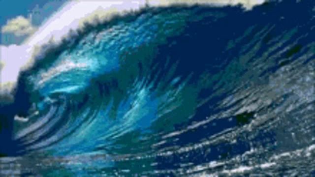 a large wave in the ocean is breaking on the shore