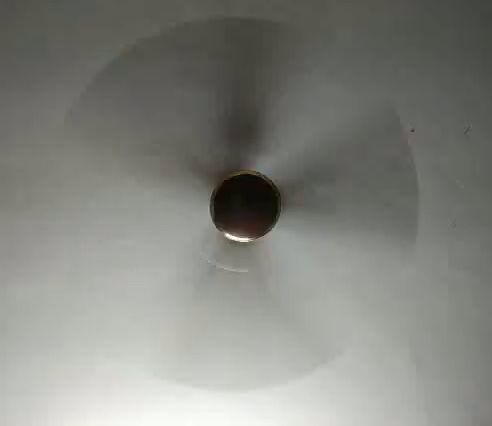 ALT: a close up of a ceiling fan spinning on a white surface