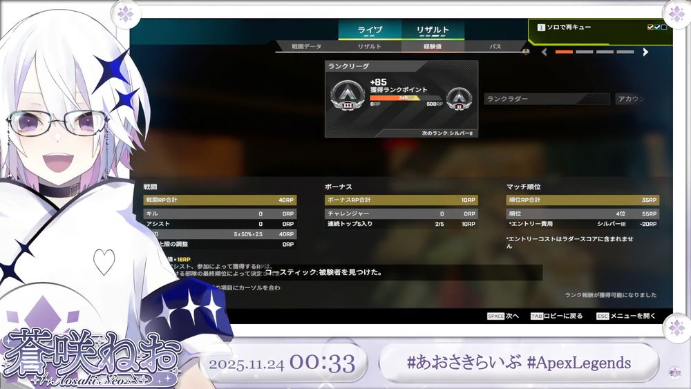 キャプチャトラブル継続なので、明日もAPEXで💫