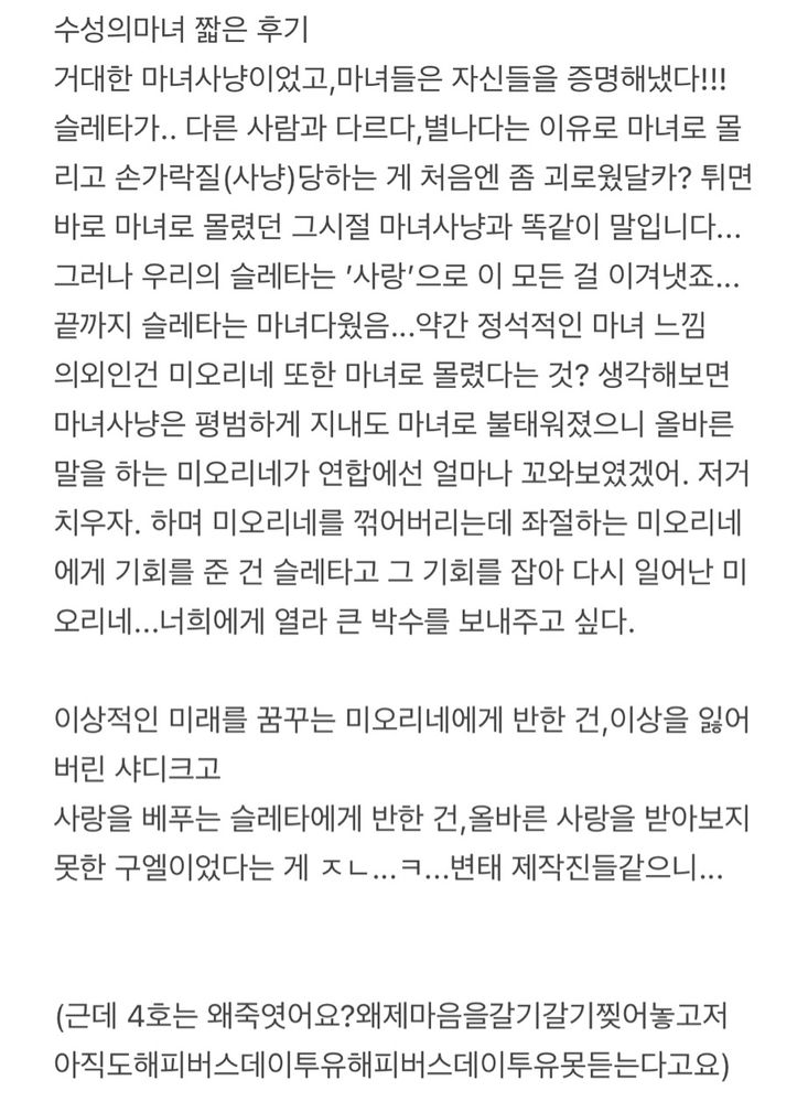 정말 아름다운 이야기였고 마음이 힘들어서 잠깐 오타쿠 깊생타임좀 가지러 가보겠습니다