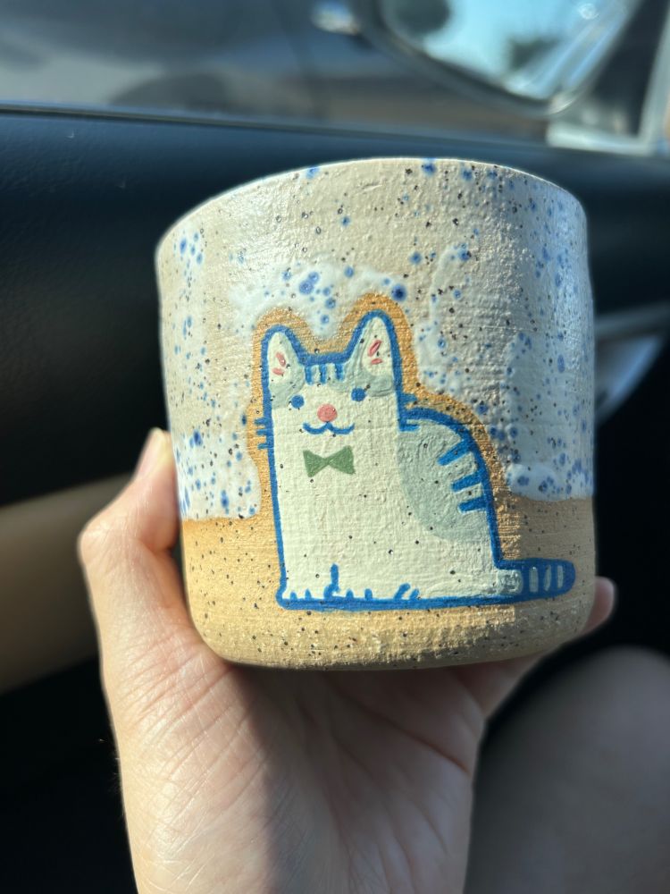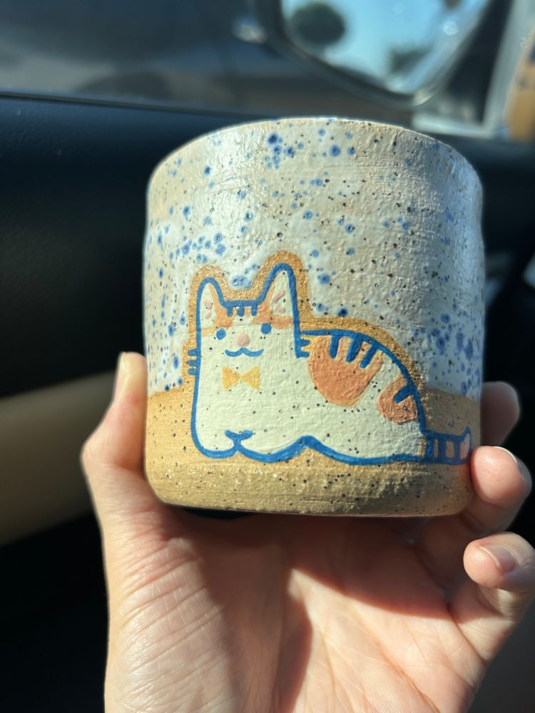 This cat dish pattern was deceptively meticulous. Hoping the blue glaze doesn’t run. (Little Ume is just for the pic, won’t be attached in the final thing for practical reason)
