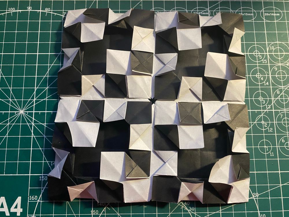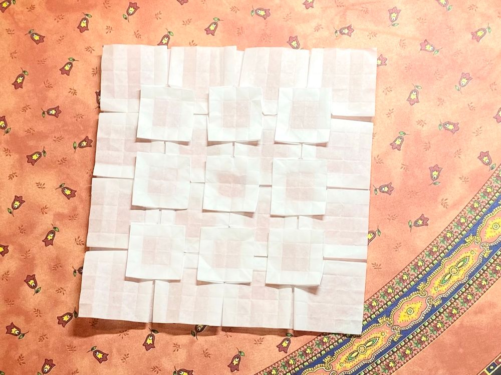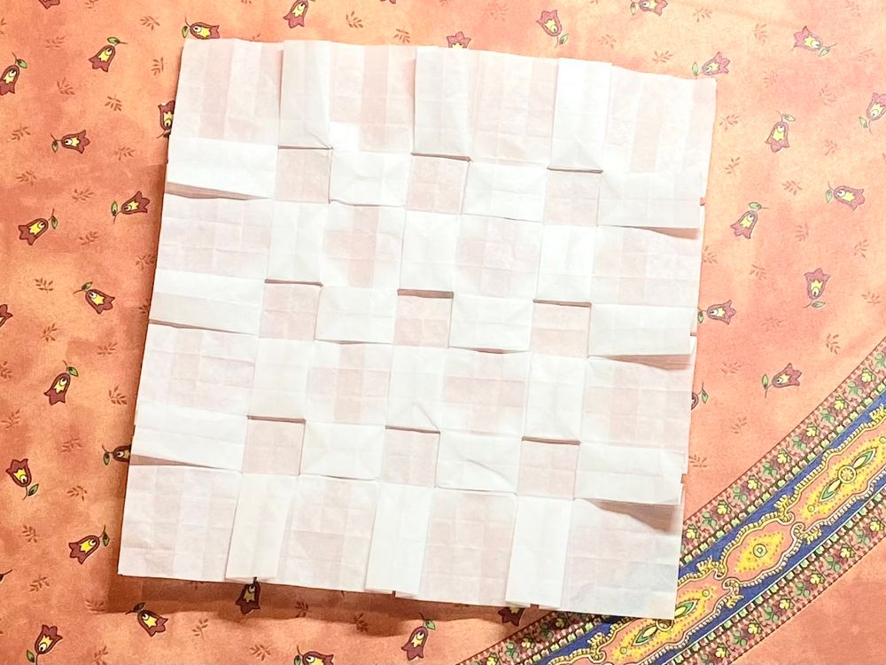 The start of my exploration of tessellation origami. Preparing and plotting crease patterns took so long! But getting each successful pleat done was just really satisfying 🤩 definitely trying more in future.