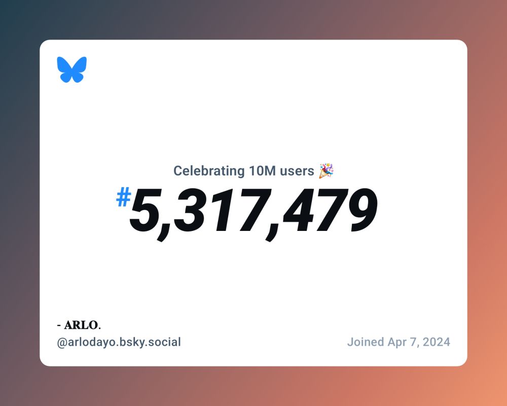 Bluesky now has over 10 million users, and I was #5,317,479!