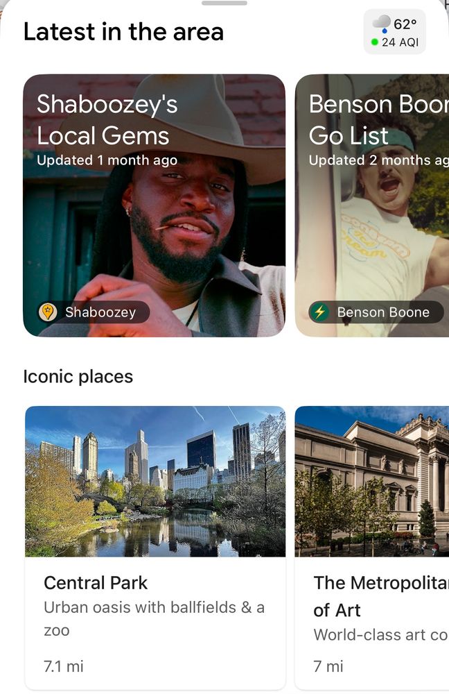 Despite being in Jersey City, Google Maps wants me to know about Shaboozey's NYC favorites, which may include such landmarks as Central Park and the Met.