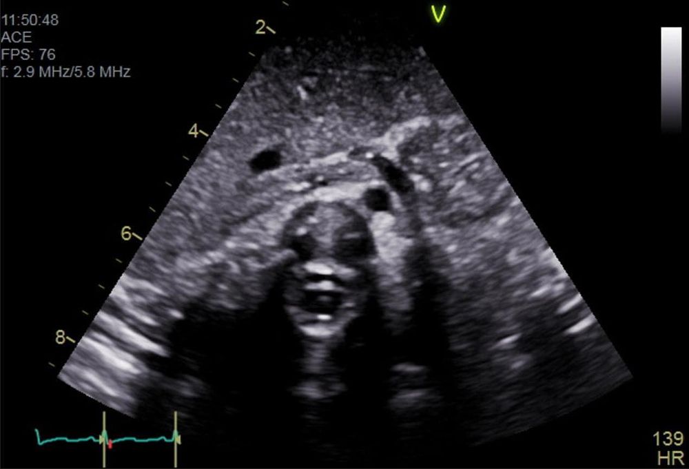 This is actually the spinal column as viewed from the subcostal situs sweep in a pediatric congenital echo.