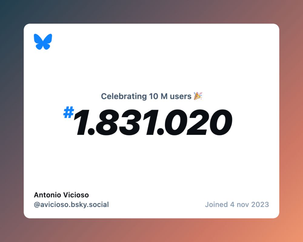 Bluesky now has over 10 million users, and I was #1.831.020!