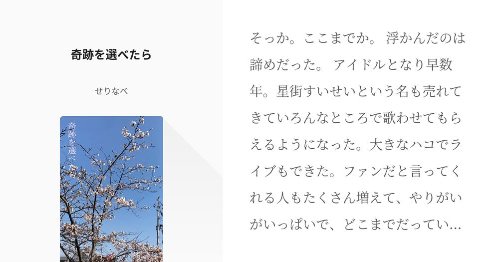 お互いが何よりも大切な存在となった後に🌸は☄️を失ってもどうにかどうにか立ち上がるけど、☄️は呆然と空を見上げていそうという勝手な概念が私の文に現れることがよくあります