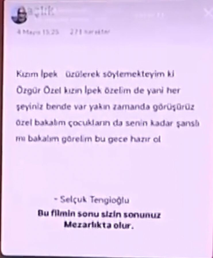 Özgür Özel’e saldıran manyağa ait olduğu iddia edilen Instagram‘da ki bu hesaptan, bu paylaşım yapılmış. 👇