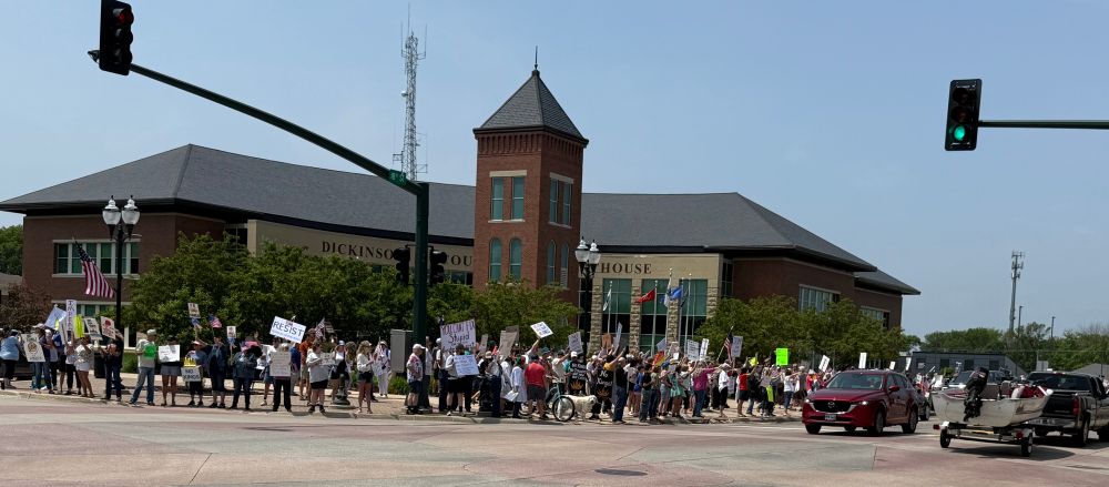 @maddow.msnbc.com #NoKingsDay Spirit Lake IA, population 5500, county population 17k. Red city & county.