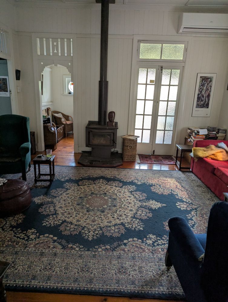 Built 1923 ... the exterior is obliterated by huge trees but the interior still makes for a good pic... it's got lovely proportions (though they're a bit skewed here)