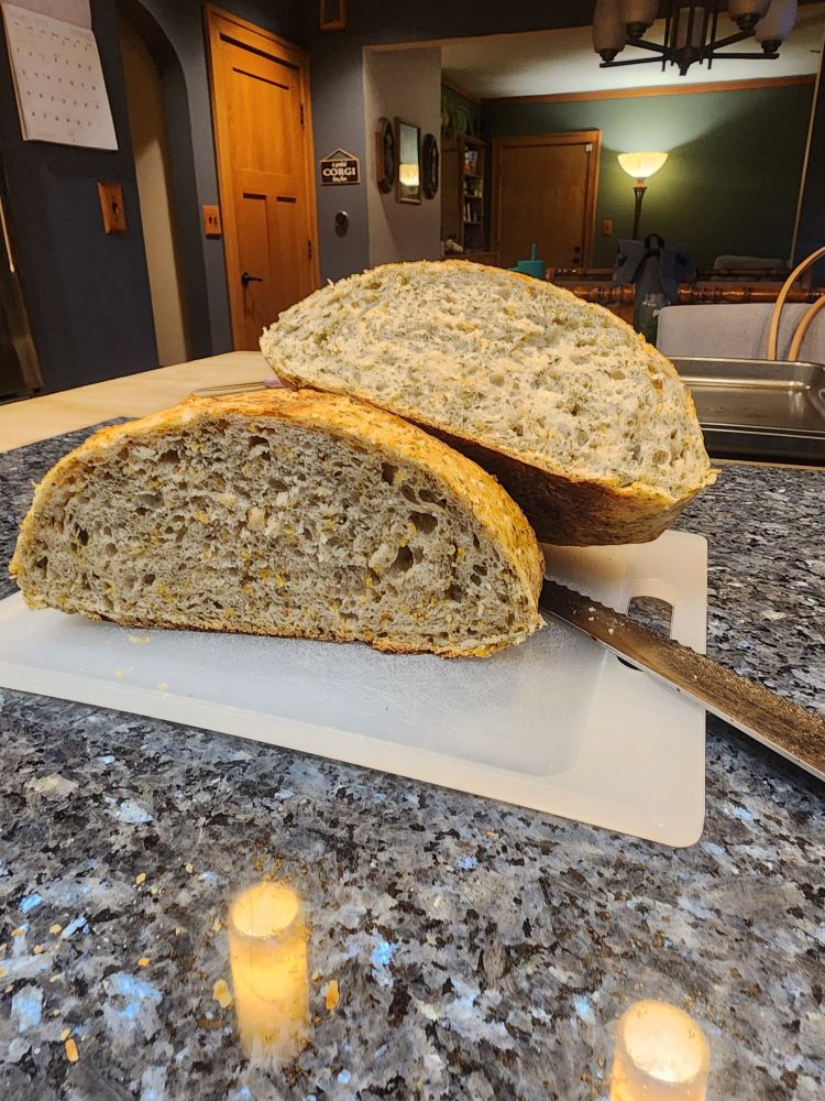 I'm so proud of my first sourdough loaf! It's an Italian herbs and cheese loaf, and is absolutely delicious 😋